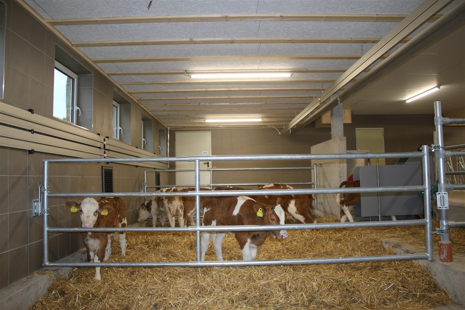 Die Familie Trinkfass hat ihren Anbindestall von 1980 in einen modernen Kälberstall für die eigene Nachzucht umgebaut. Die Kälber (ca. 80–250 kg) werden auf Stroh gehalten. Kälberstall bauen? Jetzt Angebot einholen ![]() Für ein gutes Stallklima sorgt ein abgehängter Porenkanal mit Gleichdruckbelüftung (1 Abluft-, 2 Zuluftventilatoren). Über dem Futtertisch schützt eine massive Decke mit 60 mm Isolierung. Die Beheizung und Trocknung erfolgt über Twin-Rohre. Gesteuert wird das System durch die Regelungseinheit SLC-3402 mit Temperatur- und Luftfeuchtigkeitssensoren. 0–10V-Stellantriebe ermöglichen eine bedarfsgerechte Heizungssteuerung. So entstand ein tiergerechter, gut belüfteter und effizient beheizter Kälberstall. Jetzt Angebot einholen ![]() |