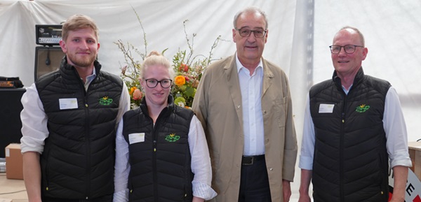 v.l.n.r.: Simon Bigler, Manuela Bigler, Bundesrat Guy Parmelin, Vorsteher des Eidgenössischen Departements für Wirtschaft, Bildung und Forschung (WBF), Ruedi Bigler