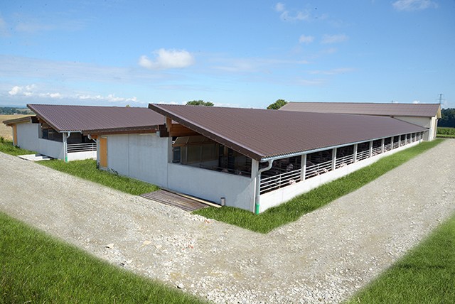 Die Standardausführung ist mit Spaltenboden und einem darunterliegenden Güllekanal. Wo es genehmigungstechnisch geht, ist dies eine preiswerte Möglichkeit, einen Tierwohlstall zu bauen.